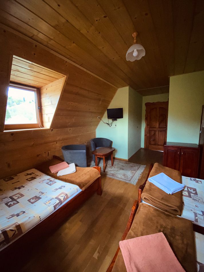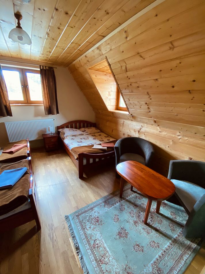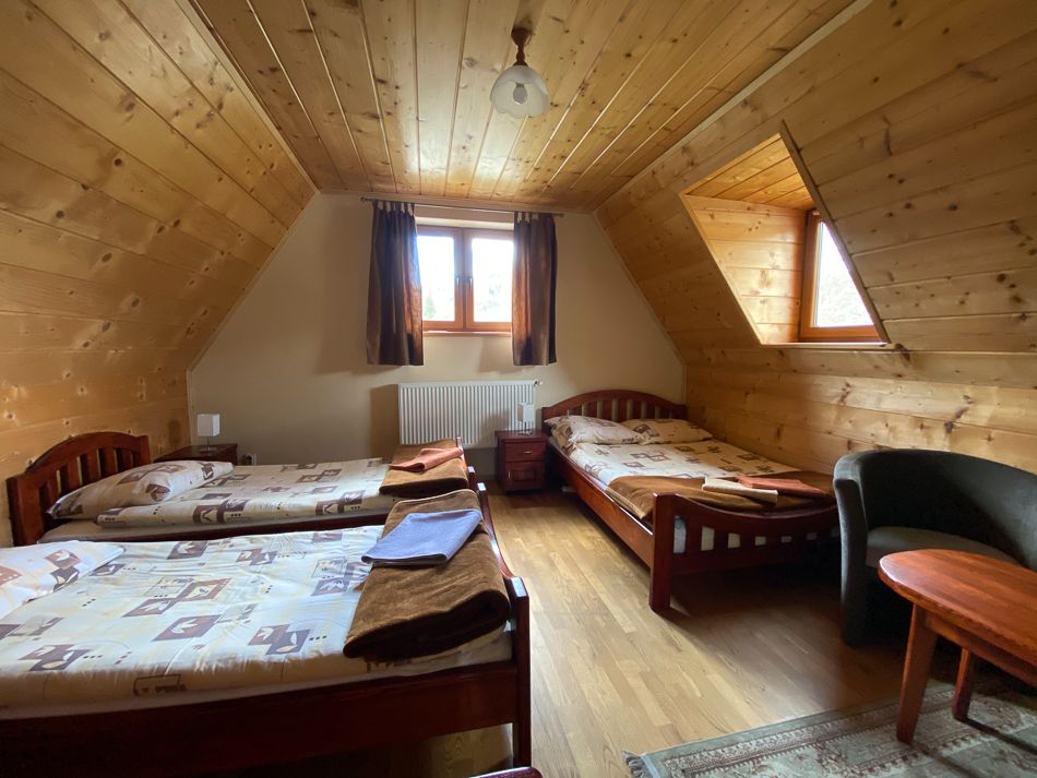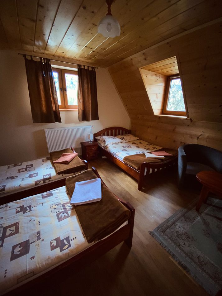 Do dyspozycji oddajemy pokój dla 2 do 4 osób. We własnym zaciszu mogą Państwo nieco odpocząć po trudach wędrówki. Pokój został wyposażony w przedmioty oraz niezbędne wyposażenie, które umilą dzień spędzony naszym pensjonacie.